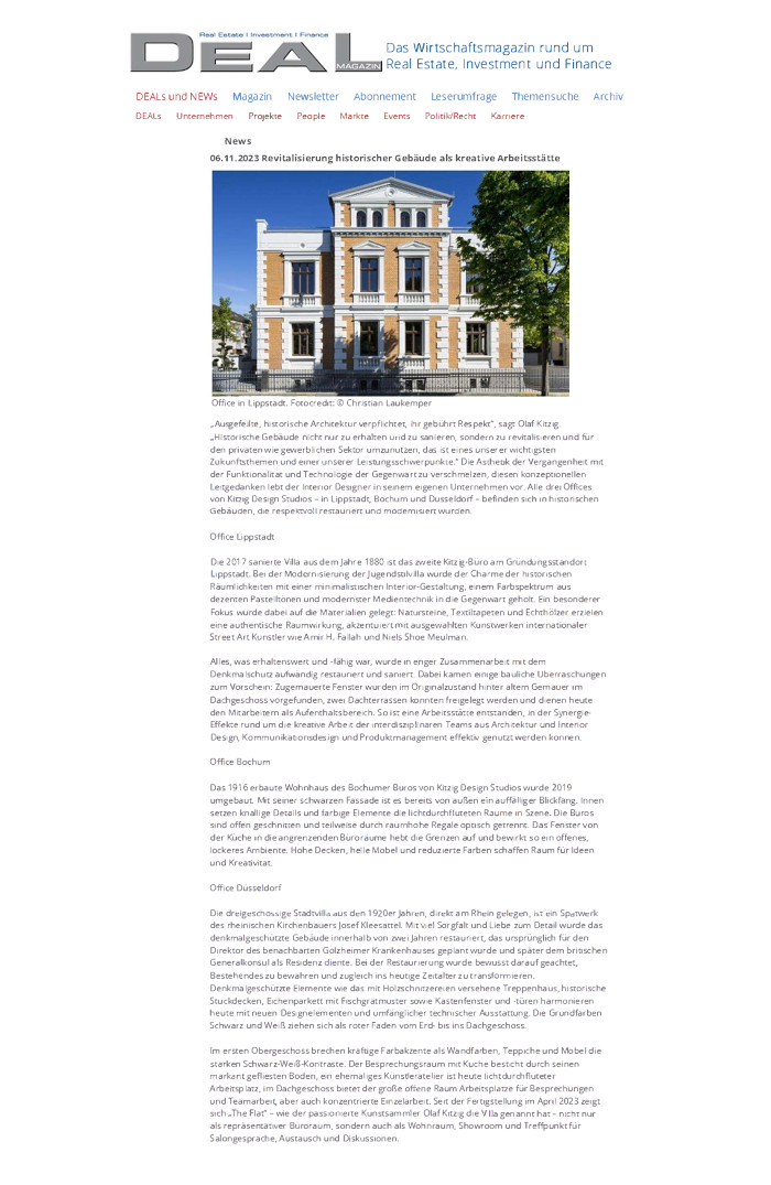 Die 2017 sanierte Villa aus dem Jahre 1880 ist das zweite Kitzig-Büro am Gründungsstandort Lippstadt. Bei der Modernisierung der Jugendstilvilla wurde der Charme der historischen Räumlichkeiten mit einer minimalistischen Interior-Gestaltung, einem Farbspektrum aus dezenten Pastelltönen und modernster Medientechnik in die Gegenwart geholt. Ein besonderer Fokus wurde dabei auf die Materialien gelegt: Natursteine, Textiltapeten und Echthölzer erzielen eine authentische Raumwirkung, akzentuiert mit ausgewählten Kunstwerken internationaler Street Art Künstler wie Amir H. Fallah und Niels Shoe Meulman.
